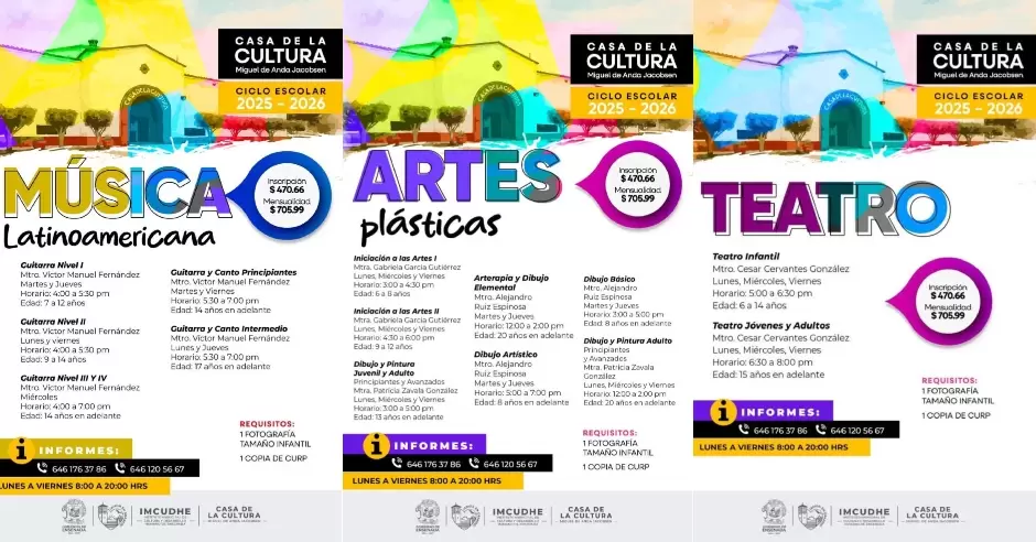 ENSENADA.- El periodo de inscripciones para talleres de música, teatro, danza, y artes plásticas que se impartirán en la Casa de la Cultura durante el ciclo 2025-2026, concluirán el próximo 29 de agosto, informó la alcaldesa Claudia Agatón Muñiz.