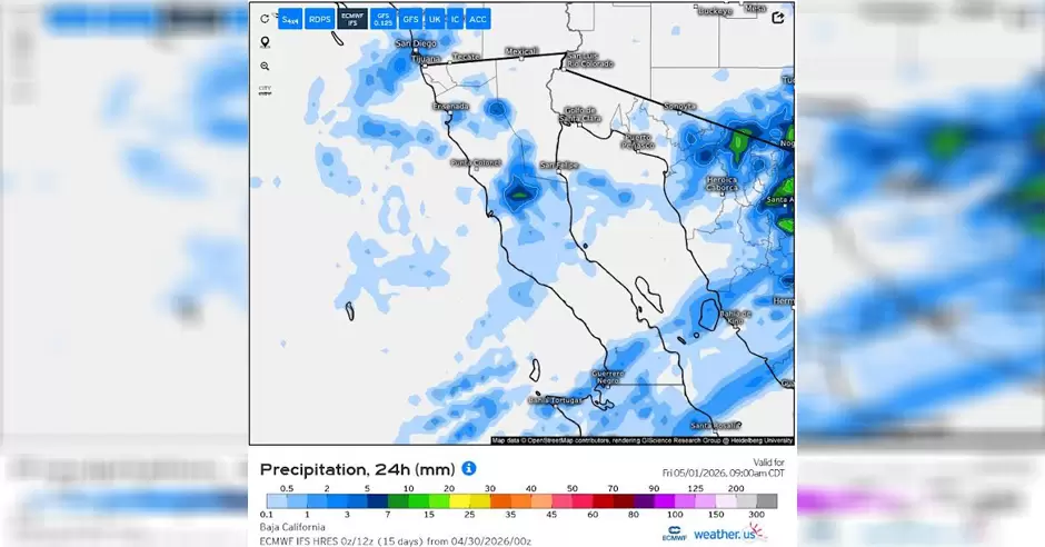 Detalló que para este día se prevé un cielo de medio nublado a nublado, con probabilidad de precipitaciones ligeras durante el mediodía y la tarde. Estas lluvias tendrán mayor énfasis en los municipios de Ensenada y San Quintín, con la posibilidad de registrarse intervalos de chubascos acompañados de descargas eléctricas en las sierras centrales de Baja California.