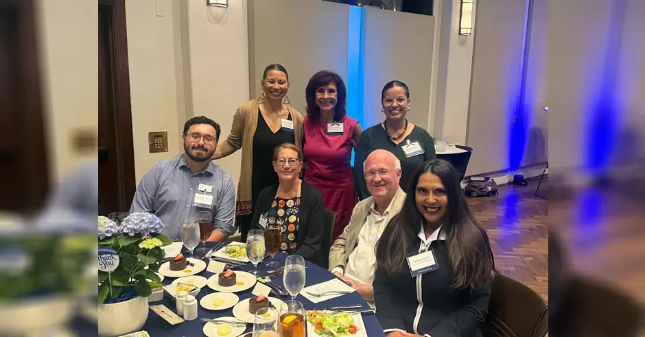 SAN DIEGO.— Don Jones y su esposa Debra, en representación de la familia de la Dra. Betty Jones, junto con directivos de la Foundation for the Children of the Californias (FCC), convivieron con Nallely Gecik, estudiante del doctorado en Educación para la Justicia Social, y Alejandro Gendrop, estudiante de la maestría en Consejería Escolar, durante la comida anual de agradecimiento para donantes de becas organizada por la Universidad de San Diego.