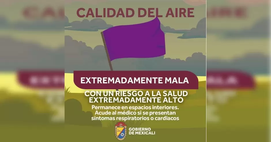 MEXICALI.- Hoy, 25 de diciembre, la calidad del aire amaneció en niveles extremadamente malos, representando un riesgo a la salud calificado como extremadamente alto. Ante esta situación crítica, se emiten recomendaciones vitales para proteger la salud de la población: