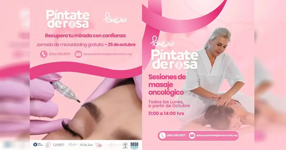 TIJUANA.- Con el objetivo de contribuir a recuperar la confianza y autoestima de mujeres que está pasando o van a pasar por un tratamiento oncológico, Pro Oncavi A.C. anunció la organización de una jornada gratuita de microblanding "Píntate de rosa" este próximo sábado 25 del mes en curso, así lo informó su directora, Mtra. Edith Pérez Velázquez.