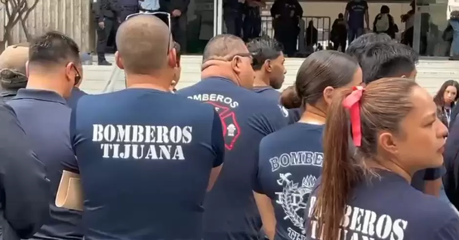 TIJUANA.- Bomberos de confianza se manifestaron en el patio central de Palacio Municipal para exigir el cumplimiento de un acuerdo firmado que contemplaba la homologación gradual de sus salarios con el personal sindicalizado, compromiso que aseguran no se ha respetado.