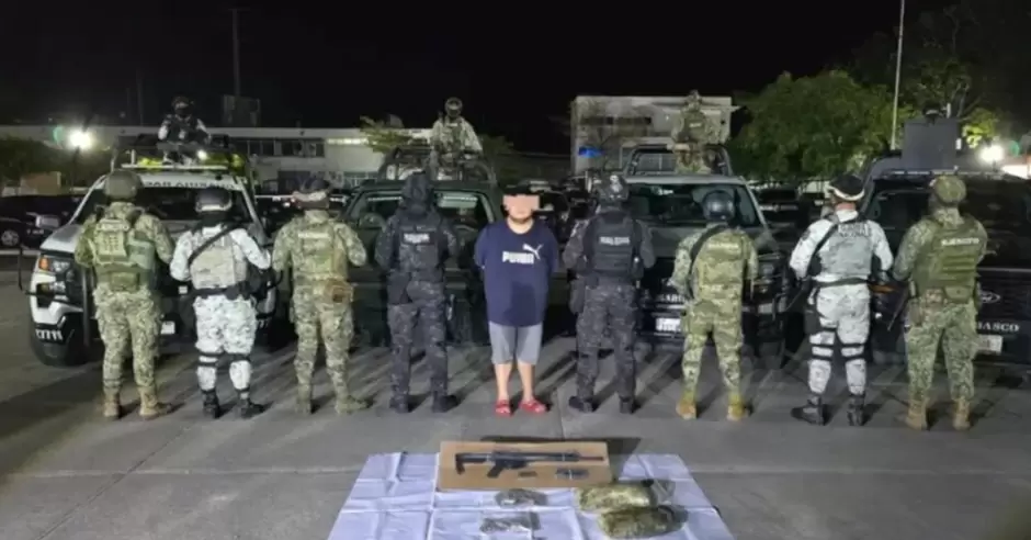 Se trata de Luis Antonio "N" alias "El Balú", de 34 años, quien fue asegurado por los integrantes del grupo de reacción táctica "Tiburones", en un retén de seguridad montado sobre la carretera Teapa-Villahermosa, a la altura de la colonia Plutarco Elías Calles, en Centro.