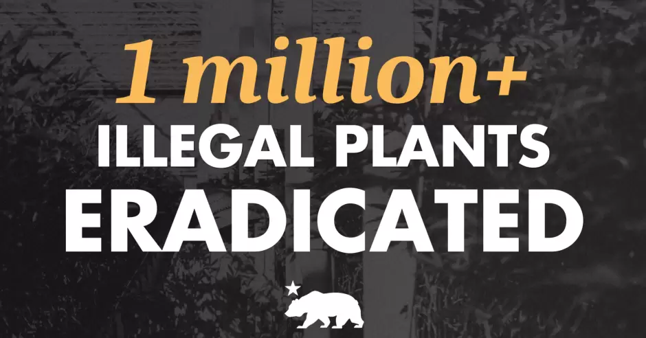- 25.7 millones de plantas erradicadas y 1.88 millones de libras incautadas (CDFW)