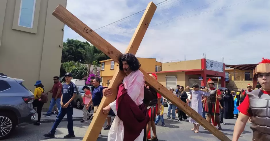 El recorrido, de alrededor de 2 kilómetros y medio, del parque Tarahumaras, en la colonia Valle Vista a la parroquia Jesucristo Sumo y Eterno Sacerdote, en el fraccionamiento Otay Constituyentes, fue encabezado por el párroco, padre Benigno Medrano Flores, quien guio a poco más de un centenar de feligreses y a quienes representaron a los personajes bíblicos de hace 2 mil años, hacia el improvisado "Gólgota", en la parte posterior del templo católico.
