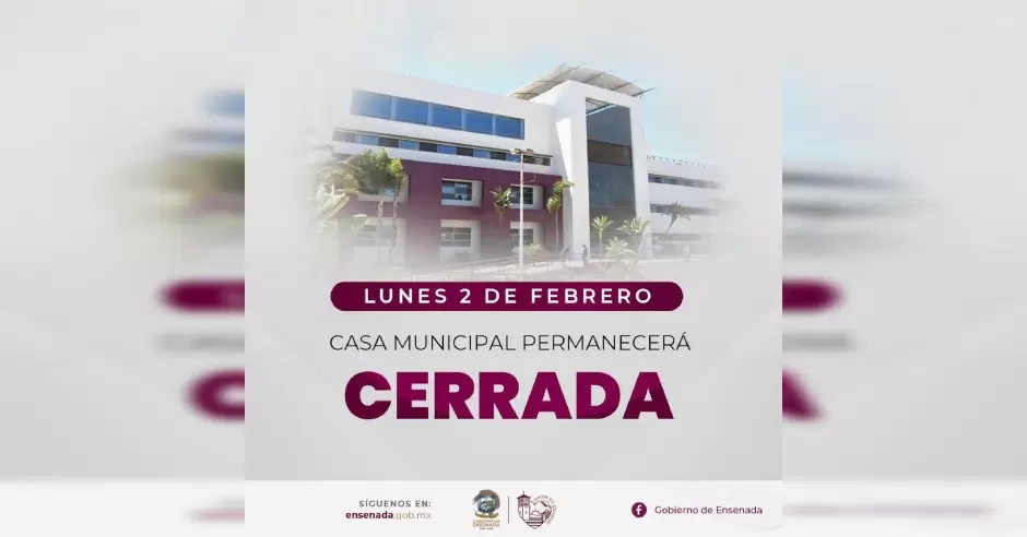 ENSENADA.- En sustitución del aniversario de la Promulgación de la Constitución Política de los Estados Unidos Mexicanos, este lunes 2 de febrero del presente año, será día de asueto para el Gobierno de Ensenada que encabeza la presidenta Claudia Agatón Muñiz.