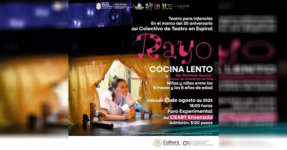 Para el sábado 23 de agosto, llega la puesta en escena Rayo Cocina Lento, una exploración sensorial y poética del tiempo, la memoria y los afectos. Rayo decide hornear galletas para recibir a su tía, y en cada paso de la receta se activan recuerdos, paisajes y emociones. La harina, el calor, la luz y el sonido se convierten en ingredientes de una historia entrañable que viaja desde la cocina hasta los paisajes más lejanos de la infancia. Ésta tiene un costo de 120 pesos.