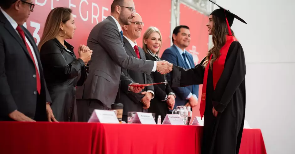 Mientras que, por parte de las y los egresados de posgrados, Laura Salgado Gutiérrez, de la maestría en Desarrollo Organizacional, fue la elegida para dirigirse al auditorio: "Hoy que estoy aquí después de 10 años de haberme graduado de la universidad, es para mí un honor poderles compartir que las herramientas que recibimos durante la vida laboral son bastante buenas, pero, a pesar de los obstáculos, aun podemos seguir aprendiendo, por lo que invito a los egresados de licenciatura a seguir aprendiendo e innovando y poder seguir impactando en la vida de otros", compartió.