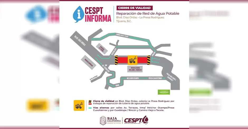 Por lo anterior, será necesario cerrar la circulación en un tramo del bulevar Díaz Ordaz, se recomienda utilizar vías alternas, como las calles Guadalupe y Rincón, para el acceso y salida de la zona de la Presa Rodríguez, mientras se realizan las maniobras.