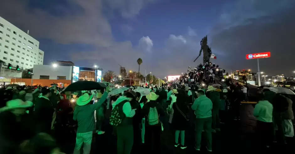 TIJUANA.- Después de partir de Palacio Municipal, el contingente, ahora encabezado nuevamente por el ataúd, inició el regreso hacia la glorieta Cuauhtémoc. Conforme avanzaban y caía la noche, los manifestantes comenzaron a encender las luces de sus teléfonos celulares, formando una estela luminosa durante el trayecto.