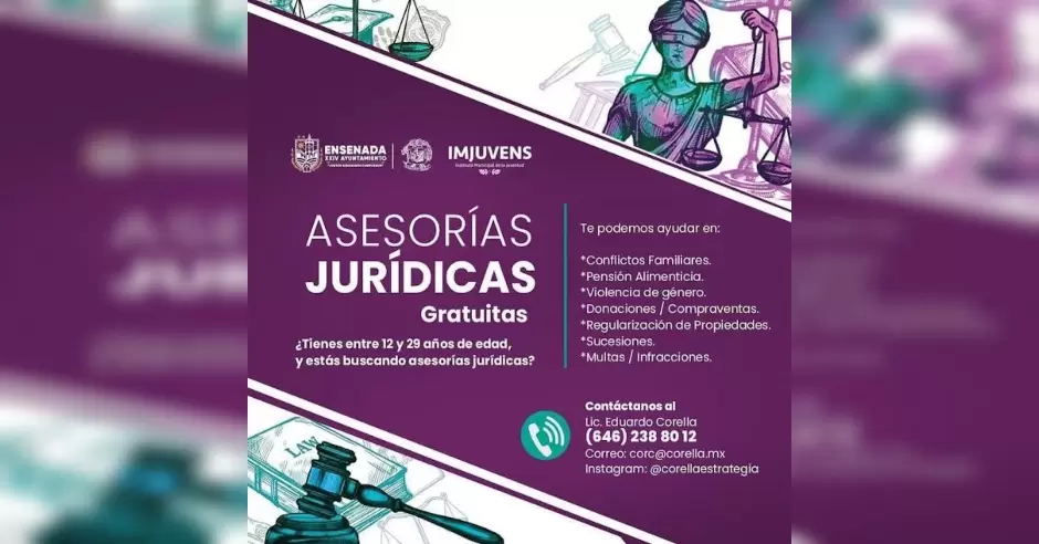 ENSENADA.- Para seguir apoyando a las juventudes de 12 a 29 años, el Gobierno de Ensenada, a través del Instituto Municipal de la Juventud de Ensenada, seguirá este 2024 brindando asesoría jurídica en coordinación Corella Estrategia.