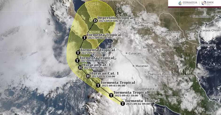 De acuerdo con el reporte, los desprendimientos nubosos del sistema ocasionarán lluvias muy fuertes, de 50 a 75 milímetros, así como rachas de viento de 50 a 70 km/h y oleaje elevado de 2.5 a 3.5 metros en las costas de Jalisco, Colima, Michoacán y el sur de Nayarit, condiciones que se extenderán al sur de Baja California Sur durante la noche.