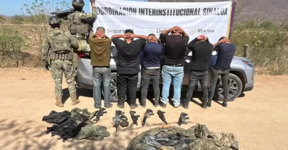 CULIACÁN, Sin.- En una cadena de operativos ejecutados por fuerzas federales, en los municipios de Culiacán, Elota, San Ignacio y Navolato fueron detenidas ocho personas del sexo masculino a las que se les aseguró 12 armas de fuego, chalecos tácticos, sustancias químicas y fueron rescatados dos hombres privados de su libertad.