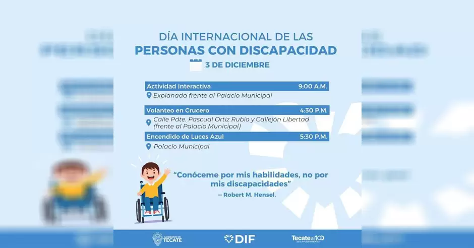 En esta conmemoración, el DIF Tecate enfatizará el mensaje central de la fecha: "Conóceme por mis habilidades, no por mis discapacidades", recordando la necesidad de avanzar hacia un municipio donde todas y todos cuenten con igualdad de oportunidades.