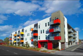 - Uno de los cuatro edificios de apartamentos de varios pisos en el campus intergeneracional del Monte Etna, que cuenta con un Centro de Bienestar para Personas Mayores.
