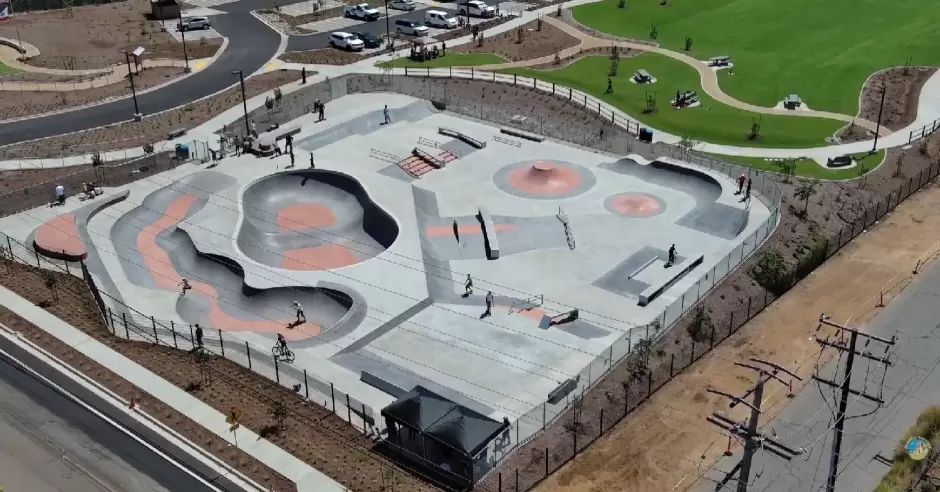 El skatepark, una de las comodidades más esperadas, rinde homenaje a las raíces agrícolas de Fallbrook con un exclusivo bowl en forma de aguacate, además de barandillas, rampas y obstáculos que desafían tanto a los patinadores principiantes como a los profesionales experimentados.