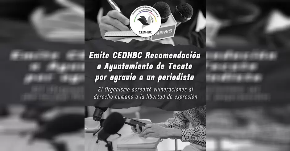 TECATE.- La Comisión Estatal de los Derechos Humanos de Baja California (CEDHBC) emitió la Recomendación 6/2025, dirigida al Ayuntamiento de Tecate, por vulneraciones al derecho a la libertad de expresión en agravio de un periodista de dicho municipio.