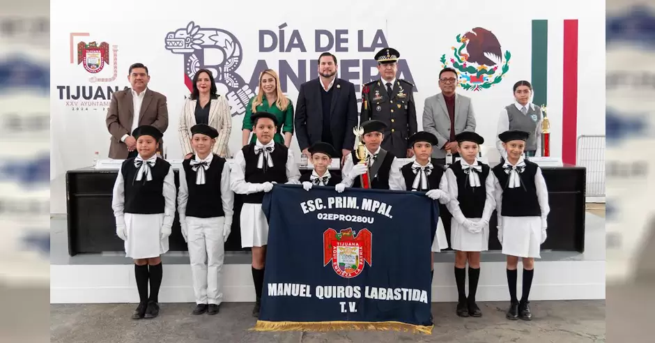 TIJUANA.- El presidente municipal de Tijuana, Ismael Burgueño Ruiz, encabezó la ceremonia cívica en conmemoración del Día de la Bandera, acto que representa la identidad, la historia y la soberanía de México.