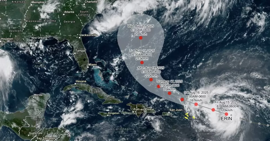 MÉXICO.- La Comisión Nacional del Agua (Conagua) informó que "Erin" se ha intensificado a huracán de categoría 1 en la escala de Saffir-Simpson, convirtiéndose en el primer huracán de esta temporada en la cuenca del Atlántico.