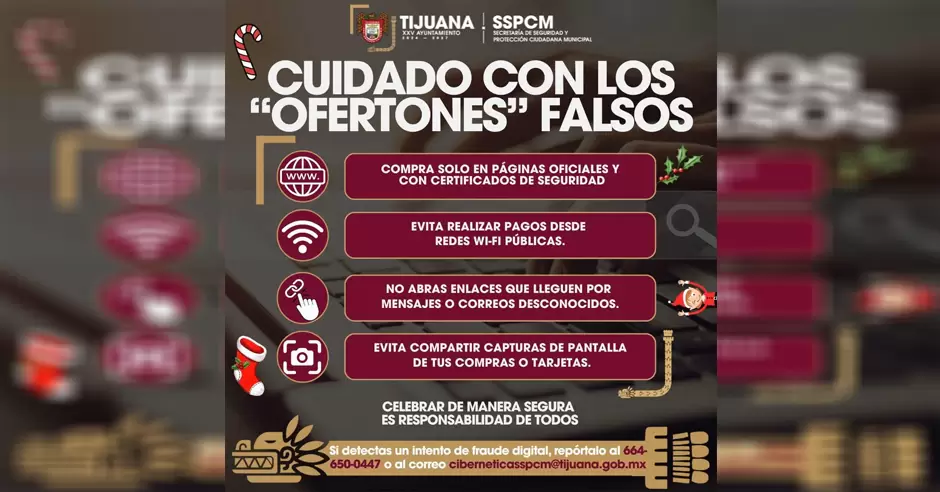 Evita ser víctima de fraudes y "ofertones" falsos esta temporada navideña, advierte SSPCM Tijuana
