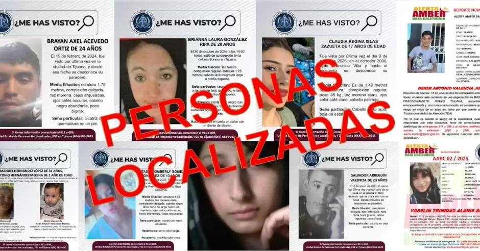 Las personas localizadas en diferentes acciones son: Brayan Axel Acevedo Ortiz de 24 años, Brianna Laura González Ripa de 28 años, Claudia Regina Islas Zazueta de 17 años, Derek Antonio Valencia Juárez de 13 años, José Manuel Hernandez Lopez de 31 años, Kalel Antonio Hernandez Medina de 1 año, Natasha Kimberly Gómez González de 13 años, Paola Samantha Martínez Meza de 15 años, Salvador Arreguín Valencia de 23 años, y Yoselín Trinidad Alanís Sala de 14 años de edad.