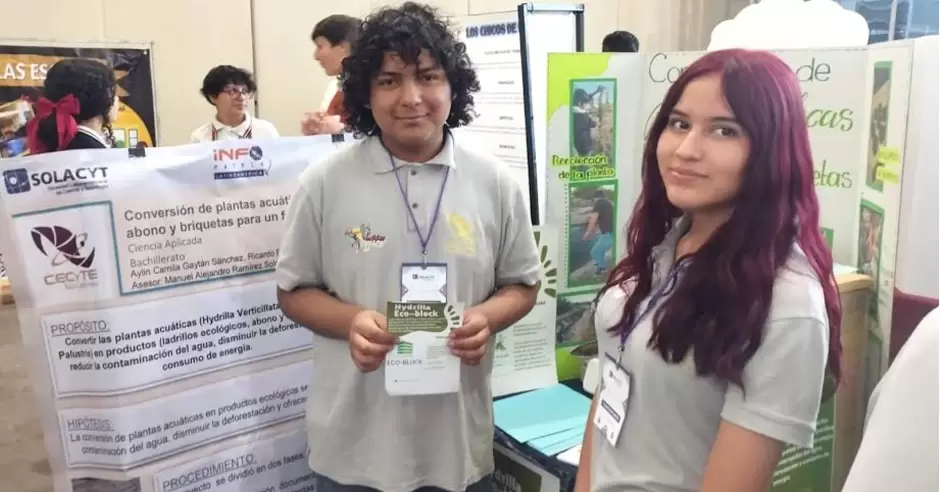 Para esto, Camila y Ricardo se prepararon para competir en la categoría Ciencia Aplicada con el proyecto titulado "Conversión de plantas acuáticas en ladrillos, abono y briquetas para un futuro sustentable", gracias al cual obtuvieron el 3er. lugar y fueron reconocidos con la medalla de bronce.