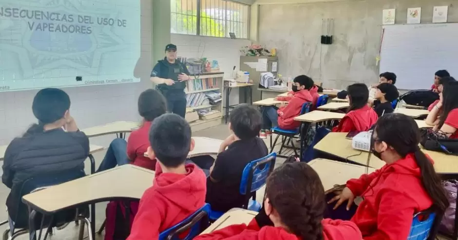 En una primera intervención, se abordó el tema "Consecuencias del uso de vapeadores", donde se explicó a aproximadamente 90 estudiantes los riesgos que estos dispositivos representan para la salud, especialmente en lo relacionado con el daño pulmonar. Se promovió la reflexión sobre la importancia de mantener entornos escolares libres de sustancias dañinas y se fomentó la toma de decisiones informadas.