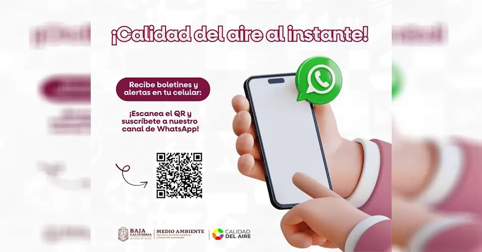 El acceso es gratuito y la suscripción puede realizarse buscando en la aplicación el canal "Monitoreo de calidad del aire SMADS BC", o bien, escaneando el código QR incluido en el flyer publicado en las redes sociales de la dependencia. Con esta herramienta, la ciudadanía podrá mantenerse informada y tomar decisiones que favorezcan su bienestar y el cuidado del entorno.