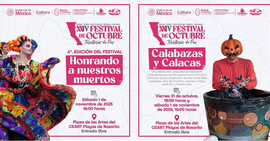 Las actividades se llevarán a cabo en la Explanada de las Artes del CEART Playas de Rosarito los días 31 de octubre y 1 de noviembre.