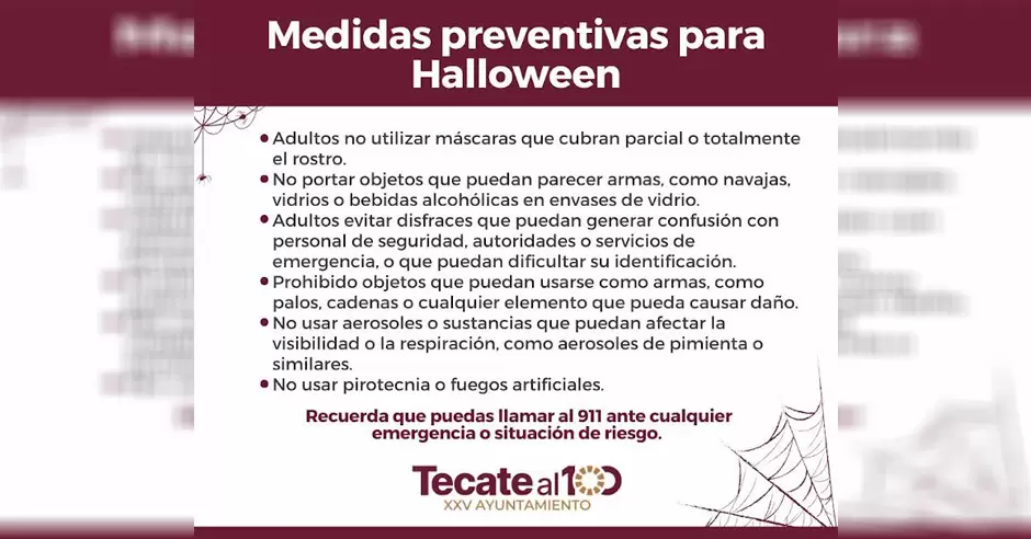 TECATE.- El Gobierno de Tecate, a través de la Dirección de Seguridad Ciudadana y Tránsito Municipal de Tecate ha implementado un plan especial de seguridad para garantizar la tranquilidad de los ciudadanos durante los eventos de "El Festival El Pan de la Catrina y Halloween".