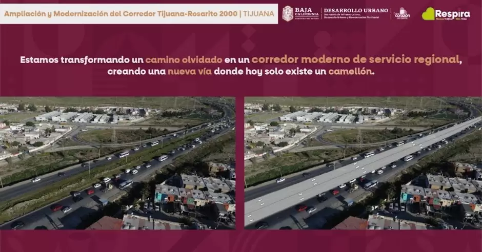 TIJUANA.- Con el firme compromiso de mejorar las condiciones de tránsito en Baja California, el Gobierno del Estado, a través de la Secretaría de Infraestructura, Desarrollo Urbano y Reordenación Territorial (SIDURT), reitera que la obra del Corredor Tijuana-Rosarito 2000 forma parte del Programa RESPIRA, y tiene como objetivo brindar una alternativa de movilidad más segura, moderna y eficiente para más de 100 mil vehículos que transitan diariamente por esta vialidad.