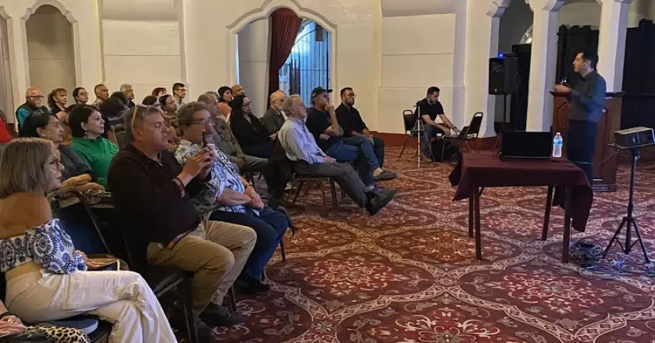 ENSENADA.- Nuevamente el Salón Casino del Centro Social, Cívico y Cultural Riviera fue sede del ciclo de conferencias del Seminario de Historia de Baja California que preside Francisco Detrell Rodríguez, donde el maestro Gabriel Fierro Nuño dictó el tema "Los viajes de Wenceslao Link y Junípero Serra por Baja California (1766-1769): experiencias y paisajes".