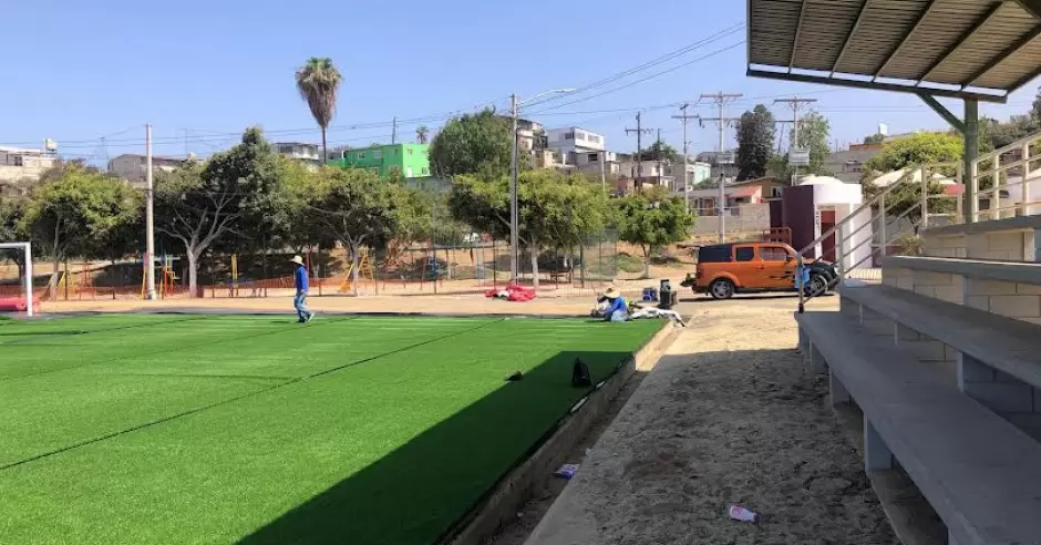 ENSENADA.- Para el uso y disfrute de familias que residen en el sector noreste de la ciudad, el Gobierno de Ensenada ha iniciado este día, con la colocación del pasto sintético en la cancha de la unidad deportiva Francisco Villa.