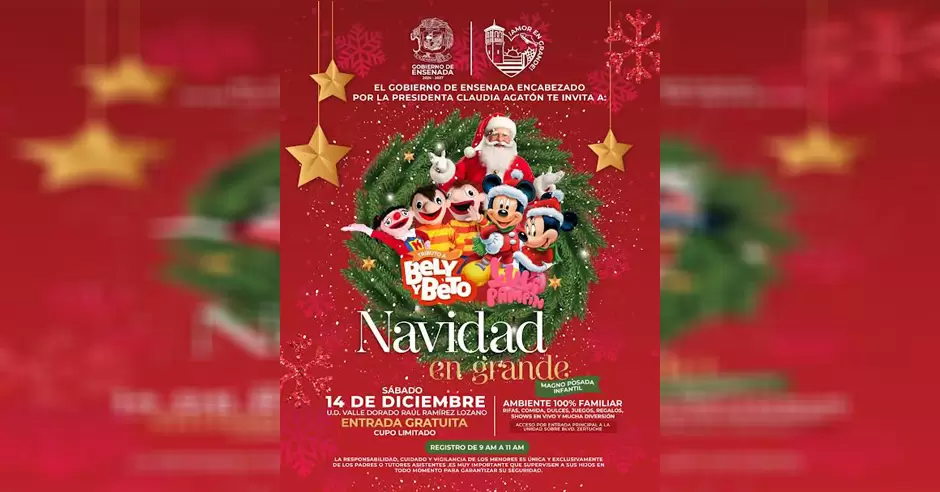ENSENADA.- Todo está listo para que el sábado 14 de diciembre, miles de niñas y niños ensenadenses disfruten de la magno posada "Navidad en Grande".