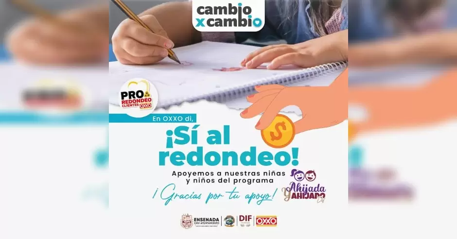 ENSENADA.- Con el objetivo de apoyar la alimentación de niñas, niños y adolescentes pertenecientes al programa Ahijada - Ahijado DIF, el Sistema para el Desarrollo Integral de la Familia (DIF Ensenada) invita a decir "sí" durante el redondeo de cadena de tiendas OXXO.