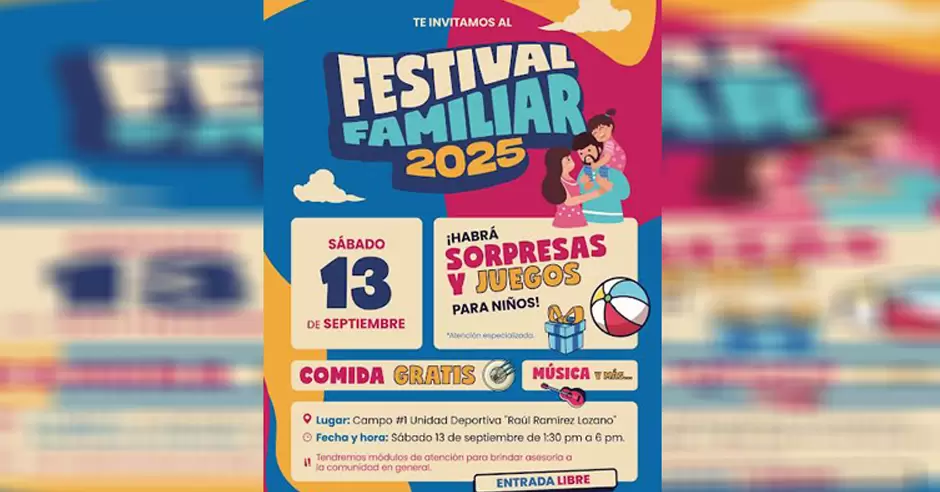 ENSENADA.- Todo está listo para que el próximo sábado 13 de septiembre, se lleve a cabo el Festival Familiar 2025, actividad gratuita organizada por grupos afines a la comunidad con apoyo del Gobierno de Ensenada.