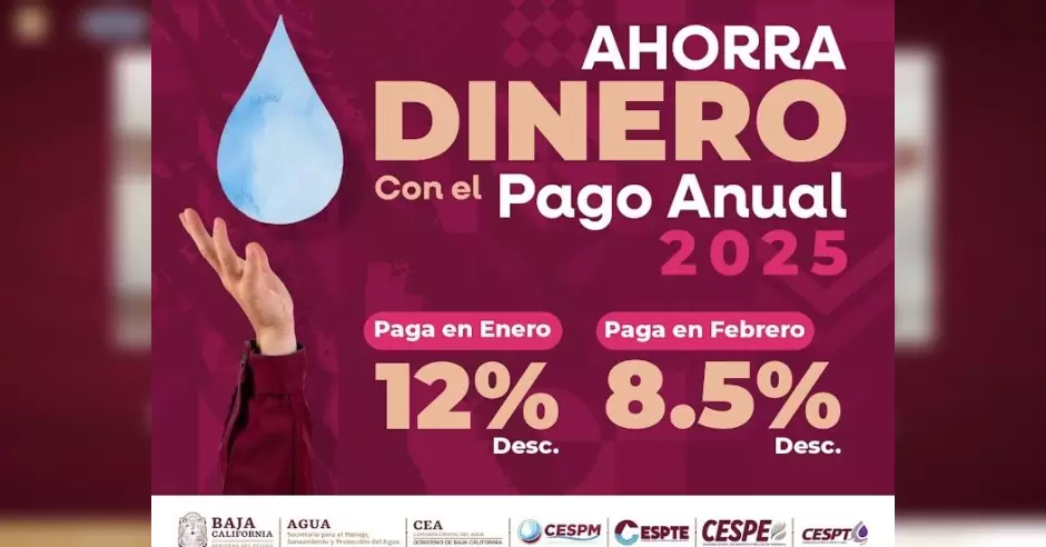 MEXICALI.- A partir de enero de 2026, se pondrá en marcha el esquema de pago anticipado del servicio de agua potable, una medida impulsada por el Gobierno del Estado, encabezado por Marina del Pilar Avila Olmeda, con el fin de aliviar el gasto familiar y fortalecer la prestación de los servicios públicos en los municipios.