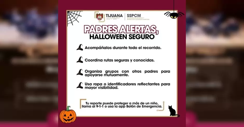 TIJUANA.- Con motivo de las celebraciones de Halloween, la Secretaría de Seguridad y Protección Ciudadana Municipal (SSPCM) hace un llamado a las madres, padres y tutores a reforzar las medidas de prevención y seguridad para evitar situaciones que pongan en riesgo la integridad de niñas, niños y jóvenes.