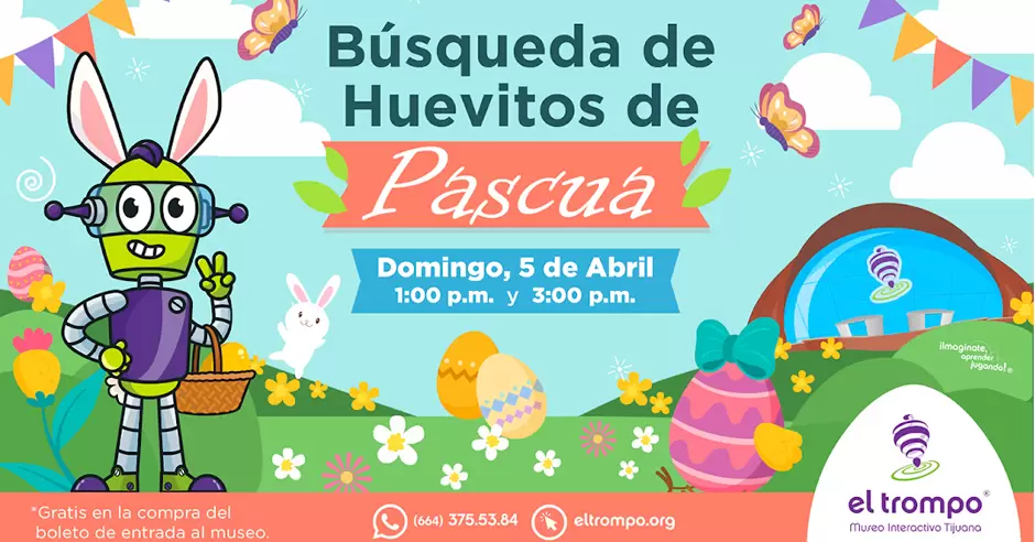 TIJUANA. - La convivencia y diversión en familia será el principal factor para un festivo muy esperado durante el periodo vacacional de semana santa. El domingo 5 de abril, El Trompo, Museo Interactivo Tijuana organiza para las familias la tradicional "Búsqueda de Huevitos de Pascua".
