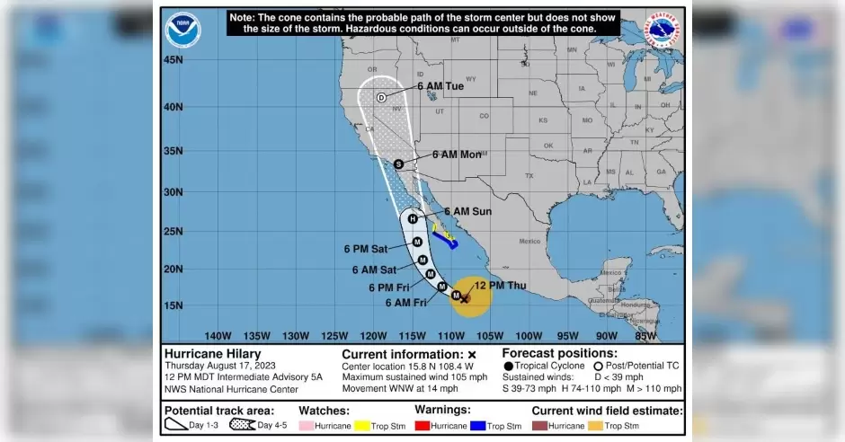 BAJA CALIFORNIA.- El huracán Hilary elevó su intensidad a categoría 2, por lo que Protección Civil BC está reforzando la coordinación y las medidas ante las lluvias y vientos de moderados a intensos que dejará el huracán este fin de semana en todos los municipios.