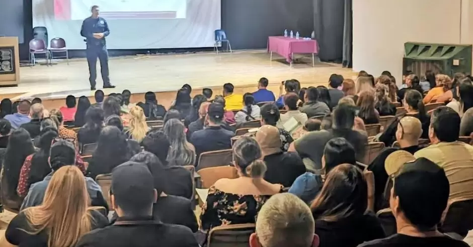 MEXICALI.- Como parte de las acciones para fortalecer la cultura de la denuncia y la prevención del delito, la Secretaría de Seguridad Ciudadana de Baja California (SSCBC) impartió una jornada informativa en el Colegio de Bachilleres del Estado (COBACH) plantel Baja, dirigida a padres de familia, docentes y alumnado, con el objetivo de prevenir casos de extorsión en todas las modalidades.