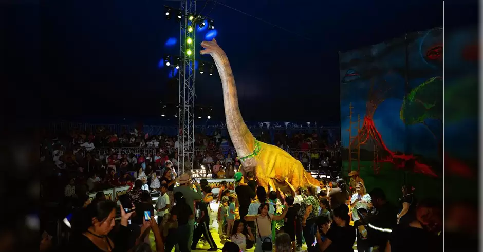 La presidenta municipal Claudia Agatón Muñiz manifestó que las y los asistentes convocados por Bienestar Social, el Departamento de Educación y Atención Ciudadana, disfrutaron de forma gratuita de un espectáculo lleno de acrobacias, malabares y números de comedia, así como de los maravillosos dinosaurios.