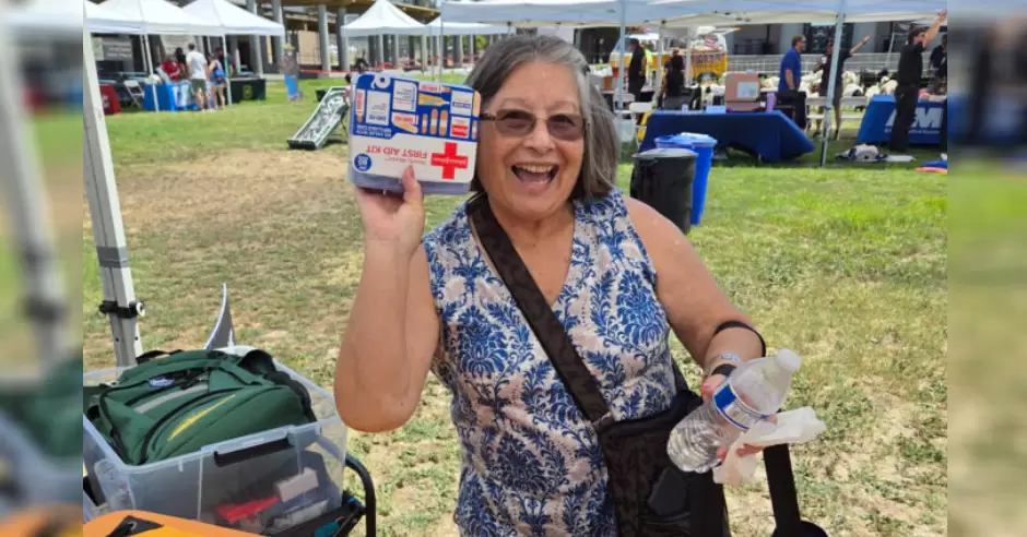 Los residentes también pueden jugar al Bingo de preparación para emergencias y competir para empacar una bolsa en 15 segundos con un kit de demostración CERT.