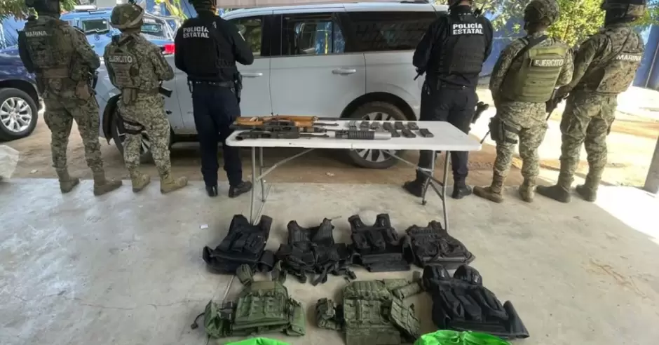 Al inspeccionarla, encontraron tres fusiles AK-47, un fusil J.C Higgins, un aditamento lanzagranadas calibre 40 mm, 12 cargadores calibre 5.56X 223, siete chalecos tácticos y casi tres mil cartuchos útiles de diversos calibres, todo lo asegurado fue turnado a la Fiscalía General de la República para que investigue la propiedad.
