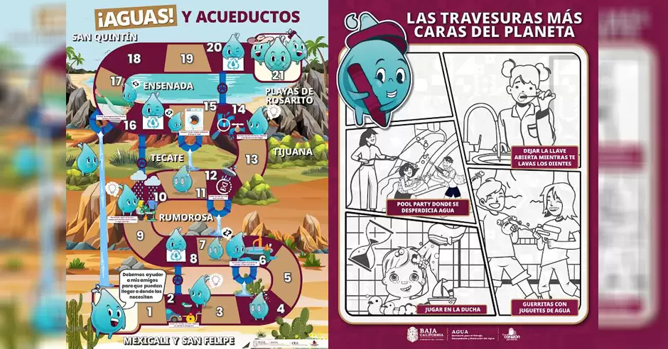 MEXICALI.- Con el objetivo de promover el cuidado del vital líquido en niñas, niños y adolescentes, la Secretaría del Agua implementa material gráfico que puede ser usado de manera didáctica y como esparcimiento.