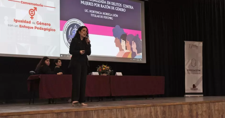 Por su parte, Zeltzin Albania Cabanillas Villa, coordinadora de Educación Básica en Ensenada, manifestó que las ponentes desarrollaron distintos temas, tales como "Igualdad de género en la NEM", "Labor de la Fiscalía Especializada en Delitos contra Mujeres en Razón de Género de FGE", y acerca de programas e instituciones de apoyo dirigidas a la mujer.