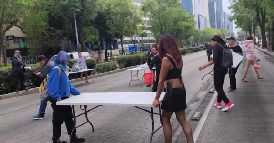 En ese momento, los manifestantes iniciaron acciones de bloqueo, ocupando carriles centrales y laterales de Paseo de la Reforma con dirección al Ángel de la Independencia, donde colocaron mesas y sillas como parte de su protesta.