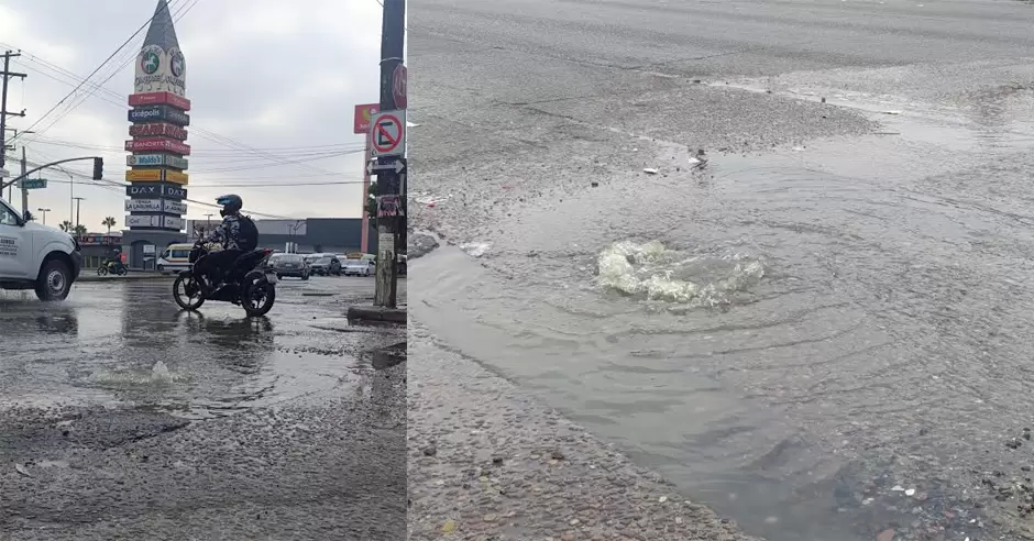 TIJUANA.- Una fuga de aguas negras fue denunciada este miércoles en la intersección del bulevar Díaz Ordaz y la calle Novena Sur, a un costado de Plaza Carrusel, en Tijuana.