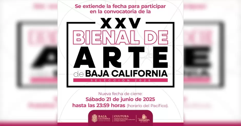 TIJUANA.- La Secretaría de Cultura de Baja California, a través de la Dirección de Museos y Galerías, ha extendido el plazo para el registro a la XXV Bienal de Arte de Baja California hasta el 21 de junio de 2025.
