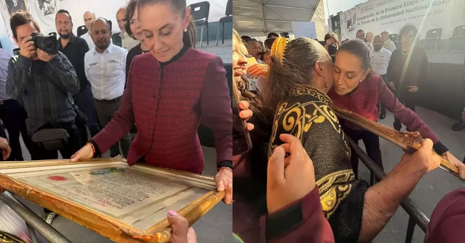 TIJUANA.- En la reciente visita de la presidenta Claudia Sheinbaum a la Universidad Nacional Rosario Castellanos en Tijuana, Baja California, se destacó la presencia de Bernardina Green, conocida como la "Abuela de Tijuana" a sus 86 años. Destacada defensora de nuestras raíces y fundadora del movimiento de la Mexicanidad desde 1977, fue nombrada madrina de la universidad por la rectora Alma Xóchitl Herrera Márquez.